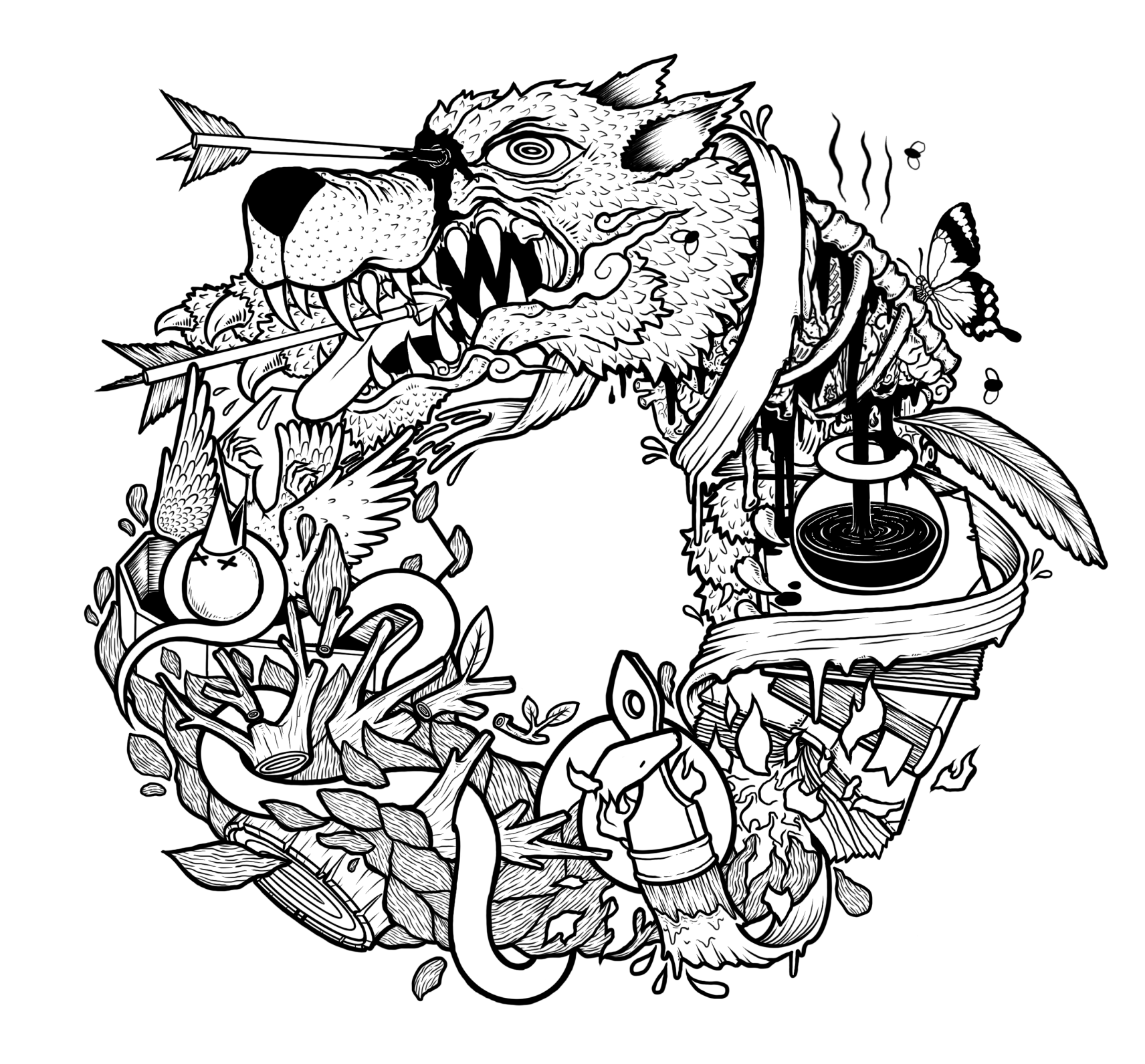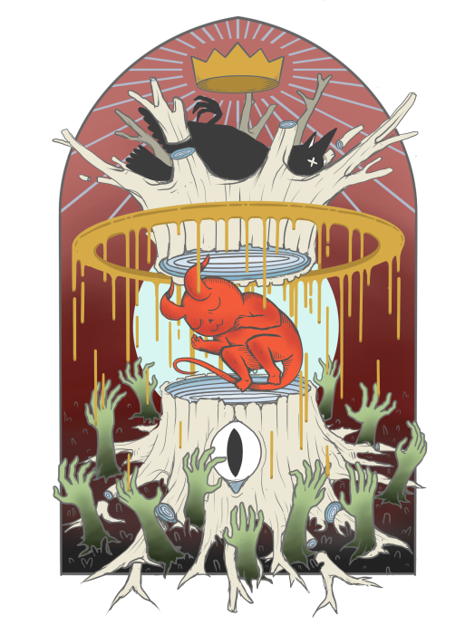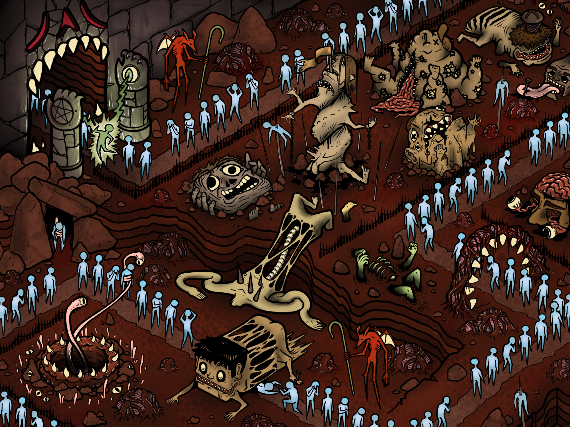 Though it’s pretty morbid, this piece is a favorite of mine. It was inspired by a few things, but mainly a period of obsession with Hieronymus Bosch and his works. I’m often asked what the “message” is for this one, and my answer? Waiting in line IS hell.