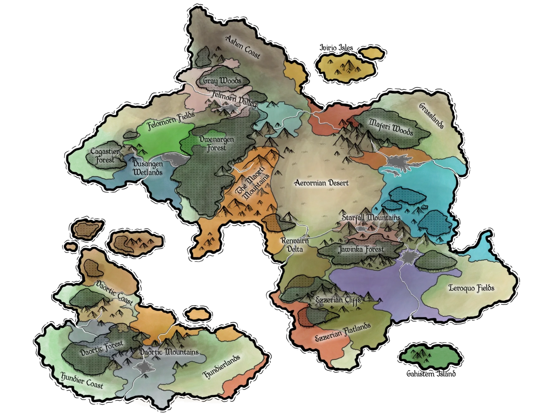 A drawing of Skyburn’s World Map that I did. Most of this never got built, but it was still a lot of fun to create!